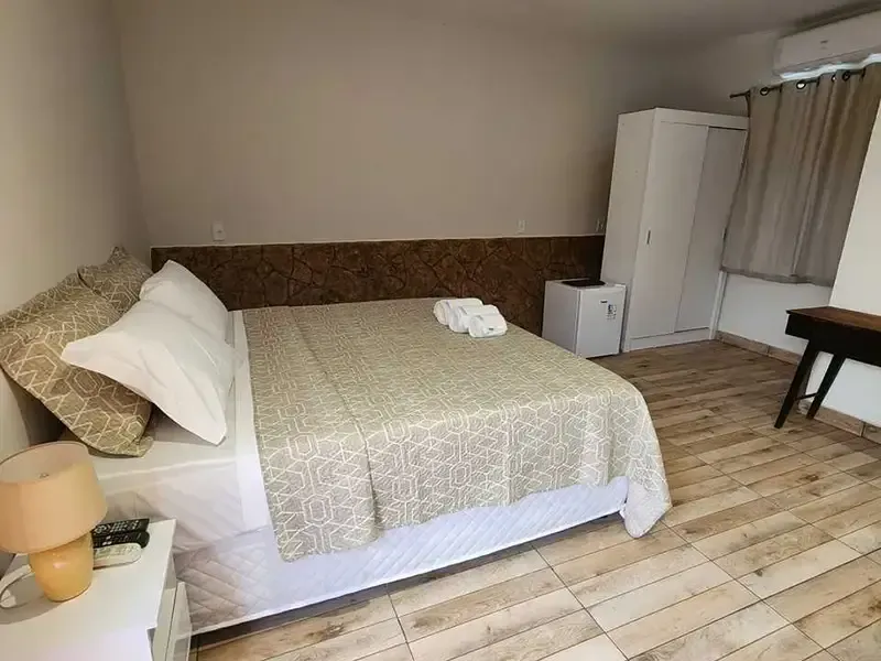 Além disso, o quarto conta com comodidades modernas, incluindo TV de tela plana, Wi-Fi gratuito e um banheiro privativo bem equipado. A decoração sutil e os detalhes cuidadosamente escolhidos refletem a atmosfera charmosa da Casa Imperial Hotel Pousada.